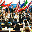 Sociale activisten, onderwijzers, overheidsfunctionarissen en artiesten – waaronder een van de meest prominente romanschrijvers van Hongarije, István Nemere – vergezelden kerkelijke leider David Miscavige op het podium om te praten over moed en toewijding onder degenen die voor het eerst de religieuze boodschap naar Hongarije hadden gebracht en hadden geholpen haar 33 Kerkcentra, bekend als missies, neer te zetten en duizenden volgelingen trokken.